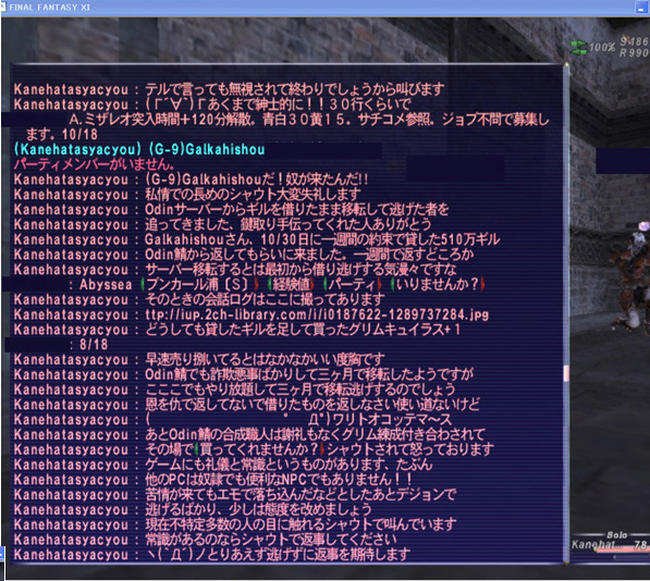 510万ギル借り逃げされた方によるシャウトログとみられるSS。