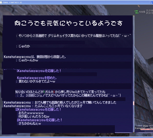 FF11 狼鯖晒しスレで最近話題に上ったSSとか、気が向いたら保存。 鯖スレが消滅して久しいので、まあそんなこともあったよね…程度で見てください(2018.11.11)